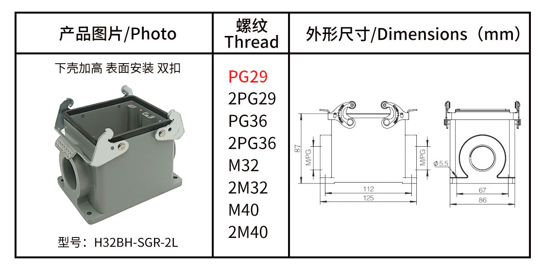 重载连接器 ● 外壳系列