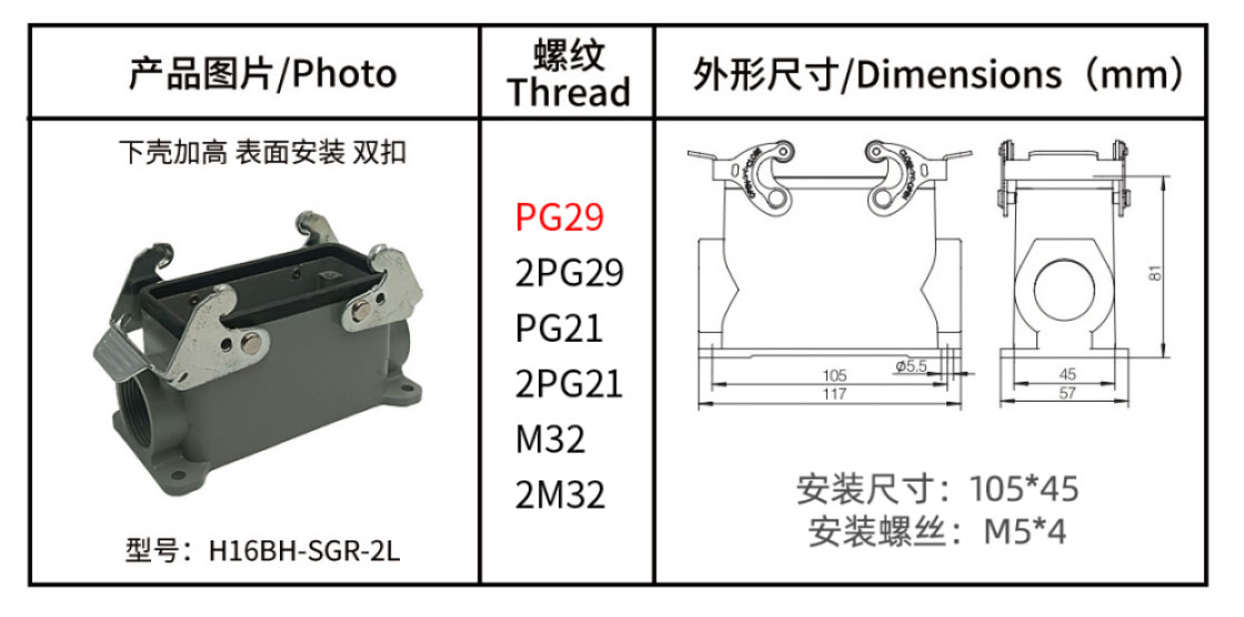 重载连接器 ● 外壳系列